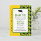 Stylish, modern patriotic graduation THANK YOU card with JAMAICA FLAG theme. Plain yellow background with GRADUATION in subtle tiled pattern. Placeholder text is customisable, so simply add your name and details. Part of the GRADUATION Collection by Berean Designs.