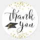 Graduation Thank You Script Black Gold Confetti Classic Round Sticker