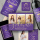 Add an elegant personalised touch to college or high school graduation thank you cards and party favours with purple, white and gold round stickers / envelope seals. All text is simple to customise. Design features a purple faux brushed metallic background, faux foil mortar board cap, and modern calligraphy style script typography. Please note that gold is printed colour, not foil. Congratulations to the graduate!
