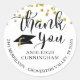 Utilise these modern, festive graduation THANK YOU return address envelope seals featuring custom colour modern calligraphy script typography, graduation cap, tassel and text accented with gold confetti. Make colour changes in EDIT. ASSISTANCE: For help with design modification or personalisation or if you would like coordinating items, contact the designer BEFORE ORDERING via the Zazzle Chat MESSAGE tab or email makeitaboutyoustore@gmail.com.