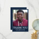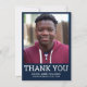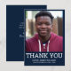 This custom photo graduation thank you card features a photo at the top framed in black with a typography design of white text on blue with your name, school and year to personalise. Add a message of thank you on the back of the card and signature or delete it. Designed by artist Susan Coffey.