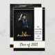 Add your photos and change text to this bold graphic graduation invitation in black white and gold tone.