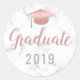 Graduation White Marble Rose Gold Grad Cap Classic Round Sticker