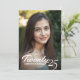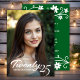 This sweet graduation invitation captures the joy and achievement of the occasion with a personal touch. The front of the card features your favourite photo of the graduate, with the graduation year elegantly displayed in a graceful brush script with the graduates name displayed below. On the back, the card has a scholarly green background, bordered at the top and bottom by a darling white floral border that add a touch of timeless elegance. Add your event details, providing guests with all the necessary information in a clear and stylish format. This invitation perfectly balances personal celebration and formal elegance, making it a cherished keepsake for this milestone event.