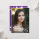 This timeless graduation invitation captures the joy and achievement of the occasion with a personal touch. The front of the card features your favourite photo of the graduate, with the graduation year elegantly displayed in a graceful brush script with the graduates name displayed below. On the back, the card has a charming purple background, bordered at the top and bottom by a darling white floral border that add a touch of timeless elegance. Add your event details, providing guests with all the necessary information in a clear and stylish format. This invitation perfectly balances personal celebration and formal elegance, making it a cherished keepsake for this milestone event.