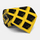 Creative graduation ceremony tie or party gear featuring classic black and gold cap pattern on a yellow background for your favourite senior class graduate's celebration.