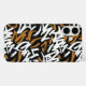 This energetic, seamless pattern is composed of expressive graffiti-style brush strokes in crisp white and bold bronze over a deep black background. The strokes mimic stylised letters and street art tags, blending dynamic motion with raw urban flair. It doesn't spell out anything specific—it's more about capturing the essence and rhythm of graffiti.
