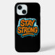 Show off your energy and passion with the “STAY STRONG” Graffiti Phone Case. This distinctive street art design, featuring bright orange graffiti letters and a bold electric blue outline, makes this case stand out and full of character.