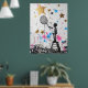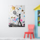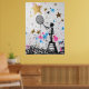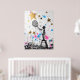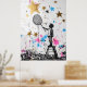 This whimsical graffiti-style artwork depicts a child standing on a ladder, using a net to catch golden stars in the sky, surrounded by splashes of blue and pink. The contrast between the black silhouette and the vibrant, playful colours creates a sense of hope and wonder, making a bold statement about dreams, aspirations, and the limitless potential of imagination. Ideal for those who appreciate urban street art with a powerful message of hope and possibility, this piece adds a touch of magic to any room.