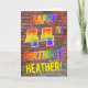 The front of this fun, eye-catching and exciting birthday-themed greeting card design features the message "HAPPY 44TH BIRTHDAY" with letters having a multicolored rainbow like gradient pattern, and a customisable name coloured yellow, on a brick wall pattern background. The style is inspired by that of graffiti or street art drawn on wall. The inside features a birthday greeting message that can be customised. A fun, happy, customisable birthday greeting card like this might be a special way to commemorate somebody’s 44th birthday. [~Z0000357]