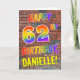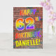 The front of this vibrant, eye-catching and fun birthday-themed greeting card design features the message "HAPPY 62ND BIRTHDAY" with letters having a multicolored rainbow like gradient pattern, and a personalised name coloured yellow, on a brick wall pattern background. The look is inspired by that of graffiti or street art drawn on wall. The inside features a customised birthday greeting message. A happy, fun, customisable birthday greeting card like this might be a special way to celebrate somebody’s 62nd birthday. [~Z0000357]
