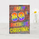 The front of this vibrant, exciting and fun birthday-themed greeting card design features the message "HAPPY 89TH BIRTHDAY" with letters having a multicolored rainbow like gradient pattern, and a custom name coloured yellow, on a brick wall pattern background. The look is inspired by that of graffiti or street art drawn on wall. The inside features a customisable birthday greeting message. A happy, fun, customised birthday greeting card like this might be used to send a birthday greeting message to somebody celebrating their 89th birthday. [~Z0000357]