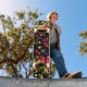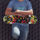 Retro style 80s graffiti scribbles graphics onto skateboards.