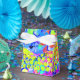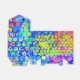 This digital graffiti has all the vivid colours of salt water fish. Multiple shades of blue are mixed with yellow, orange, purple, lime green, pink, aqua, black. The various textures and opacities give the design depth.