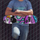 Whether you’re doing grinds on the half-pipe or kickflips in the street, this competition shaped board has supreme pop! Our decks are made of the best quality hard-rock maple and with our one-of-a-kind printing process; you get the best skateboard available in the world.