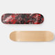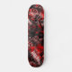 Skateboard with red and black graffiti plus skelton and words insane/power in design.