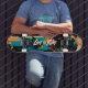 This skateboard deck combines an edgy skull motif with graffiti-inspired abstract strokes and the "Live to Ride" motto. Perfect for skaters with a rebellious spirit, this high-energy design merges street art with pop-art elements for a unique, bold look.