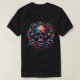 I give wanted to give this a 4 instead of a 5 because these Basic DARK T0shirts run unexpectedly SLIM or Narrow. Which is great if you do not have a potbelly, but I have a paunch. It isn't the shirt's fault that I've got a beer belly. The design and shirt itself is a quality cotton shirt. The color is more of a deep purple, but still a very pretty color. The Basic DARK T-shirts run a bit SLIMMER than the Basic Ts. The neck is a fraction narrower (or seems to be narrower) also. I'm a paunchy middle-aged woman and my neck is 12 inches (31cm) thick and the neckline fell about the same as in the photo of the man, and I had the desire to tug it a bit. So if you're a thick necked man or like loose shirts, be aware these are slimmer shirts. Once I get rid of my lockdown paunch it'll look great. The shirt washed well in cold water with no apparent bleeding. We don't have a dryer, so it hung dry. Did not shrink. Love the colors and the design. The design looks smaller on my shirt than it does on the model on-line. But still, it looks good on the shirt. The printing looks as it does on the model, just the size seems fractionally smaller. Washed garment in cold water, hung dry and design appeared unaffected.