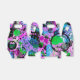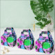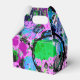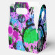 These colourful favour boxes flaunt a lively abstract in shades of turquoise, pink, purple, lavender,periwinkle, green, black and white.