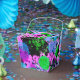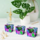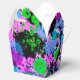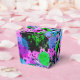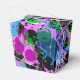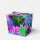 These colourful favour boxes flaunt a lively abstract in shades of turquoise, pink, purple, lavender,periwinkle, green, black and white.