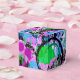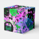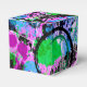 These colourful favour boxes flaunt a lively abstract in shades of turquoise, pink, purple, lavender,periwinkle, green, black and white.