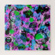 A lively abstract in shades of turquoise, pink, purple, lavender, periwinkle, green, black and white.