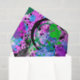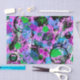 A lively abstract in shades of turquoise, pink, purple, lavender,periwinkle, green, black and white.