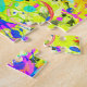 This puzzle has the popping shades of summer including: yellow, lime green, pink, orange, turquoise, aqua, black, coral, blue and more. I used layers upon layers of colours and textures in varying degree of opacities to give these depth and most importantly...FUN!