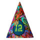 Celebrate a birthday with a colourful street-style graffiti party hat with gold crown and age. Click the custom button to change the age.