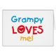 Grampy Loves Me T-shirts, cards, stickers, bodysuits bags, and more with colourful red, yellow, and blue text and heart design. These Grampy Loves me apparel and gift items will make grampy smile!