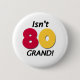 Black, red, and yellow text design for the 80th birthday that reads "Isn't 80 Grand!".