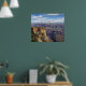 27” x 23” poster with an image of a view of the Grand Canyon, a steep-sided canyon carved by the Colorado River, far below, in the state of Arizona in the United States. The canyon is contained within and managed by Grand Canyon National Park, the Hualapai Tribal Nation, the Havasupai Tribe, and the Navajo Nation. The Grand Canyon is 277 miles (446 km) long, up to 18 miles (29 km) wide and attains a depth of over a mile (6,000 feet or 1,800 meters). See matching acrylic wall art, acrylic triptych wall art, metal wall art and wrapped canvas print. See the entire Arizona Poster collection in the ART & POSTERS section.