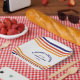 These paper plates are perfect for your cabin getaways... Bold park stripes with navy custom Granc Canyon cabin club crest. Inspired by the timeless style of vintage park blankets, these plates feature bold, classic stripes. Personalise with the details of your gathering... year and state. Perfect for a family or friends cabin trip, cabin theme party or cabin club bachelorette. Matching accessories available in Grand Canyon Cabin Club Park Stripe Collection.