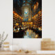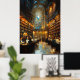 Step into the elegance of a grand library with this stunning impressionist art print. Featuring warm lighting, intricate bookcases, and a breathtaking stained glass window. Perfect for book lovers and those seeking sophisticated wall décor.