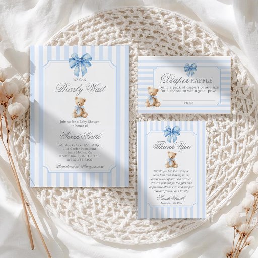 Grand millennial Teddy Bear Baby Shower Boy Invitation, We Can Bearly Wait Invite
