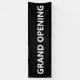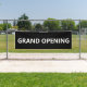 This grand opening banner is black. This outdoor business banner has white text in all caps. An outdoor banner is a simple and affordable way to market the opening of your new business. You can change the message on the banner if desired.