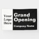 You can showcase the grand opening of your business with this black and white banner. A display image is on one side. You can replace the image with your company logo. The other side is black with white display text. You can edit the text as needed (shown: Grand Opening Company Name).