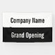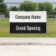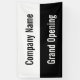 A grand opening banner lets everyone know your business has opened its doors to the public. The white text at the bottom says 'Grand Opening'. The white text is on a black stripe. A white stripe at the top has black display text for the company name.