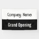 A banner lets everyone know you are open for business. The white text at the bottom says 'Grand Opening'. The white text is on a black stripe. A white stripe at the top has black text. You can edit it to show your business name or a custom message.