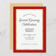 This invitation offers a professional design that can be used for a grand opening or any other event. The border is dark red and gold. Custom text allows you to add your celebration invitation details.