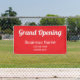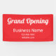 This grand opening banner has a white text you can customise. This bright red banner currently says Grand Opening in a decorative script. Additional lines of text are available for your business name, website, and phone number.