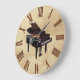 A tasteful view of a Grand Piano on parchment-effect background, for all you dedicated music-lovers out there. Classical and stylish as a wall clock design for anyone from music-teachers or their students, in the classroom to any trendy night club or music-recording studio.