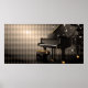 Grand pianos, the frame and strings are horizontal, with the strings extending away from the keyboard. The action lies beneath the strings, and uses gravity as its means of return to a state of rest. This is a grand classical piano, or an electronic keyboard piano.