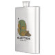 The product is a good size and came exactly as it was pictured. The lid is not attached to the flask, which could be dangerous on drunken nights... The print came out surprisingly well and looks very sharp. Would definitely recommend.