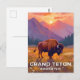 Grand Teton National Park | Bison Animal Painting Wyoming Travel Postcard