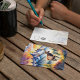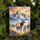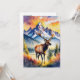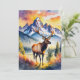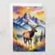 This postcard features a watercolor portrait of an elk walking through Grand Teton National Park in Wyoming.