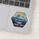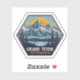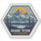 Capture the majestic beauty of Grand Teton National Park with this vintage-inspired travel sticker. The design features a stunning illustration of the snow-capped Teton Range rising over a serene lake, framed by dense pine forests. The warm, glowing sun in the background adds a sense of adventure and timelessness. This sticker is perfect for anyone who loves nature, hiking, and the great outdoors.