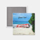 A refrigerator magnet with a photo of a red boat on Grand Turk