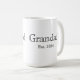 Celebrate a new chapter with this classic Grandad Est. custom coffee mug featuring a clean serif font and minimalist design. This high-quality Grandparents Day gift, is also a perfect pregnancy announcement surprise, or just a wonderful gift for when the kids go to visit. Just add the year or years that Dad became a Grandad.
