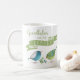 Green banner with "Grandbabies make life GRAND" on the top with a cute watercolor bird family. Add grandchild(ren) photo to the other side. Sweet gift for a new grandmother.